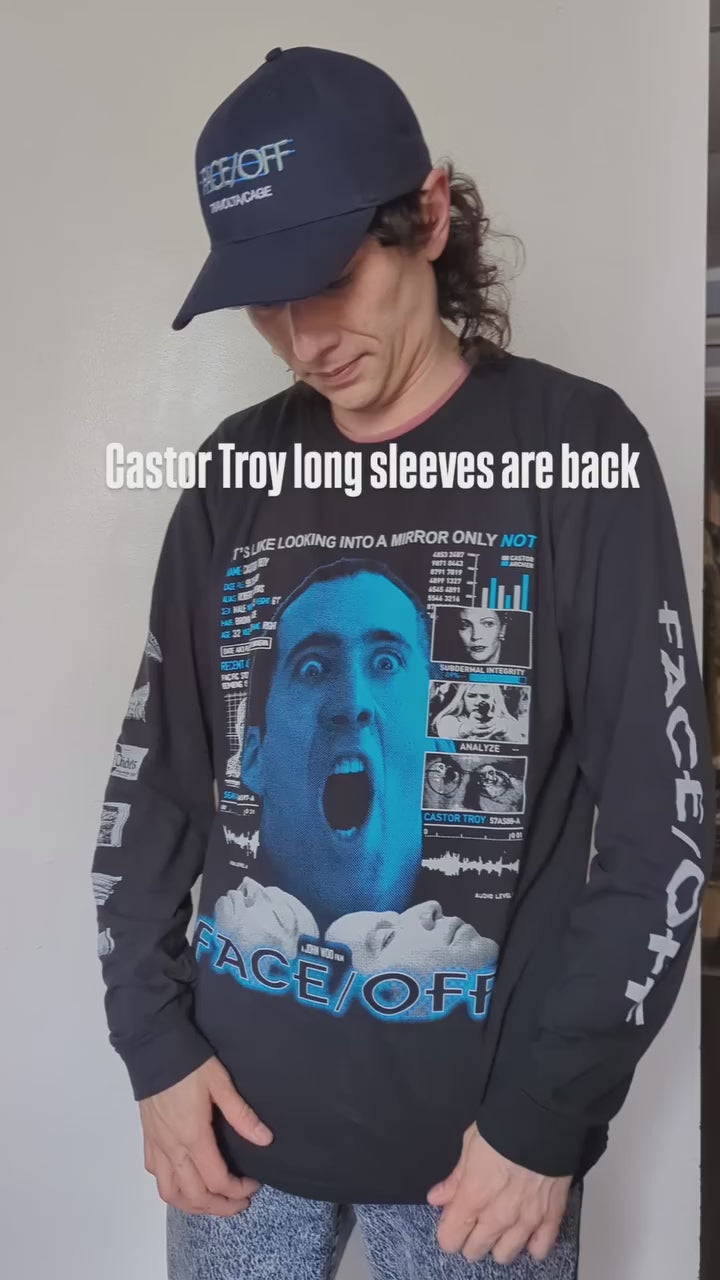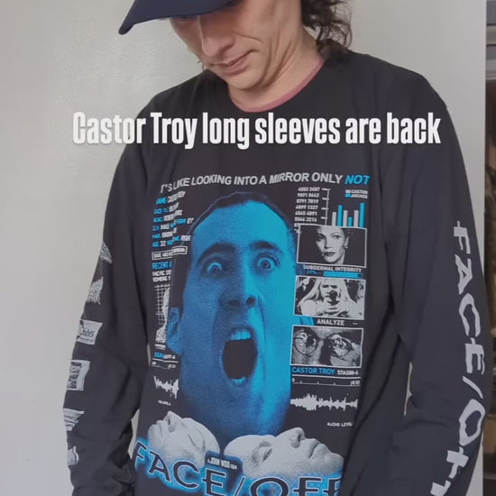 Celebrate that one time Castor Troy stole Sean Archer's face then fucked his wife but also inadvertently fixed all his family's domestic problems with this 4 location long sleeve screen-printed on your choice of Gildan Unisex Ultracotton or Comfort Colors Unisex long sleeve.